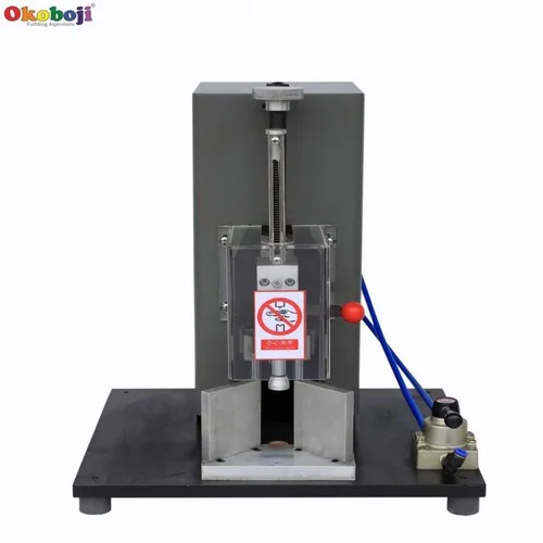 Okoboji Pneumatic Corner Cutter with 7 dyes. Features R8-R12mm knife, 80mm max cutting width, 56 times/minute working rate, 180W motor.