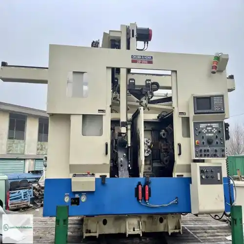 Okuma 2SP-35HG twin spindle CNC lathe. Max turning length 230mm, max diameter 380mm. Features 18.5 Kw Fanuc spindle motor.