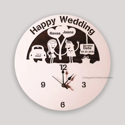 Orbiz Analog Wedding Wall Clock, Model OCG120. Custom size, acrylic material, suitable for home use. This analog clock offers a unique design for celebrations.