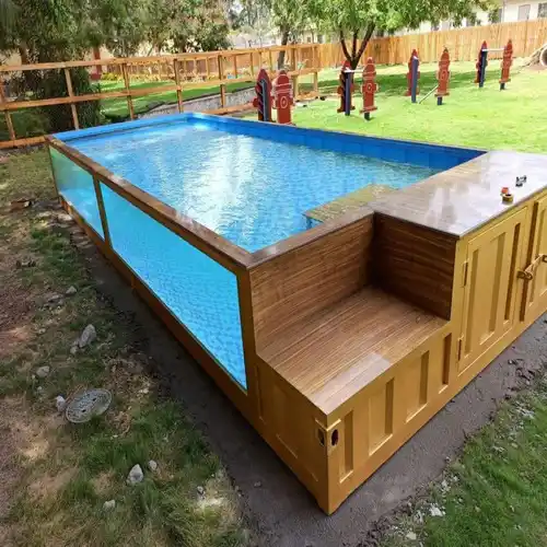 Outdoor container swimming pool with dimensions 15x7x4 feet. This pool is 4 feet in height and designed for hotel/resort usage.