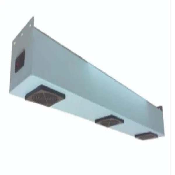 An overhead static eliminator device designed to neutralize static electricity in industrial environments. Features a model designation matching its function.