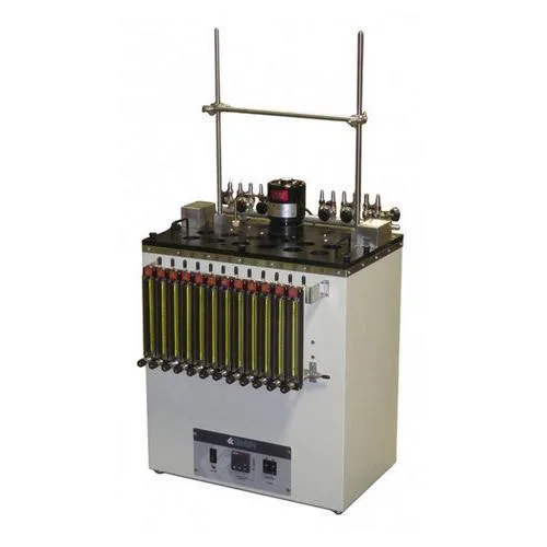 This machine tests mineral oil oxidation stability with a temperature range of 0-100°C, frequency of 50Hz, and adjustable time up to 9999 hours. Features 3000W heating power and a 10-100ml/min flow meter.