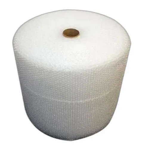Waterproof white air bubble roll for packaging. 40 GSM, 5mm thickness, 100m length. Provides secure cushioning for shipped items.