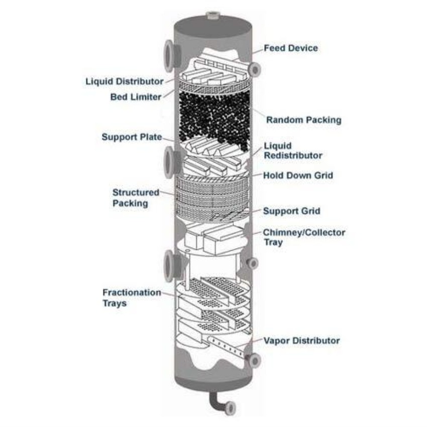 Industrial packed bed scrubber for efficient gas cleaning. Designed for effective particulate and gas removal in various applications.