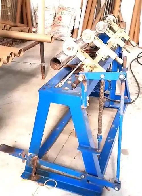 Semi-automatic paper tube fine cutting equipment with 100 MM diameter and 1000 MM cutting length. MS construction, PADESIAL driven. Made in India.