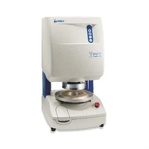 Laboratory powder flow tester equipment operating at 50 Hz and 220 V single phase. Designed for precise measurement of powder flow characteristics in laboratory settings.
