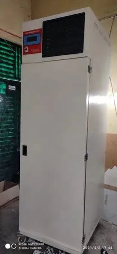 Automatic single phase pharmaceutical refrigerator machine for laboratory use. Features LED display, 220v voltage, and 50 Hz frequency. Material: M.S./SS.