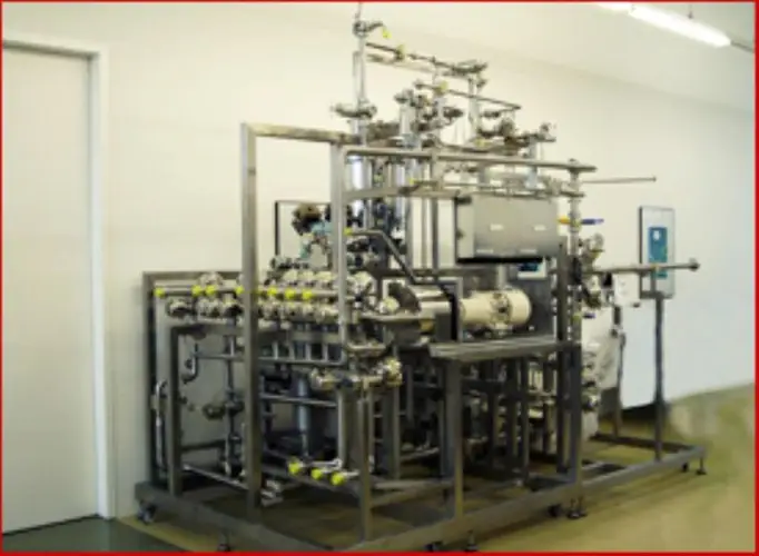 Pharmaceutical skids equipment crafted from SS. Features chemical resistance, rust-proof properties, and a smooth surface finish for optimal sanitary applications.