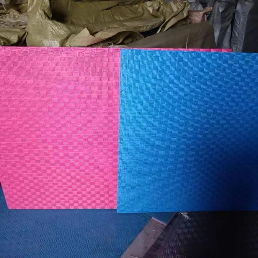 Plain EVA foam mat, 20mm thickness. Available in red, blue, green, yellow. Size 1m x 1m. Ideal for play areas and gyms.