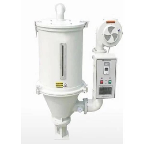 White automatic plastic hopper drying device, 415V, with membrane dryers. Reaches a max temperature of 180°C for effective plastic material drying.