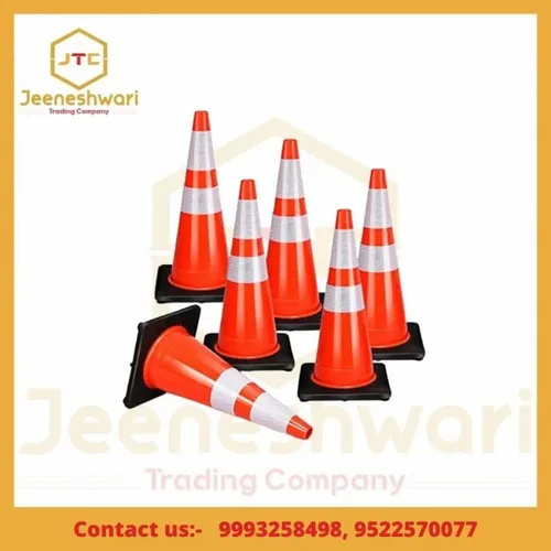 Orange, white, and black 500gm plastic cone for road safety. Polished finish and durable construction. Suitable for traffic management and hazard delineation with a minimum order of 79 units.