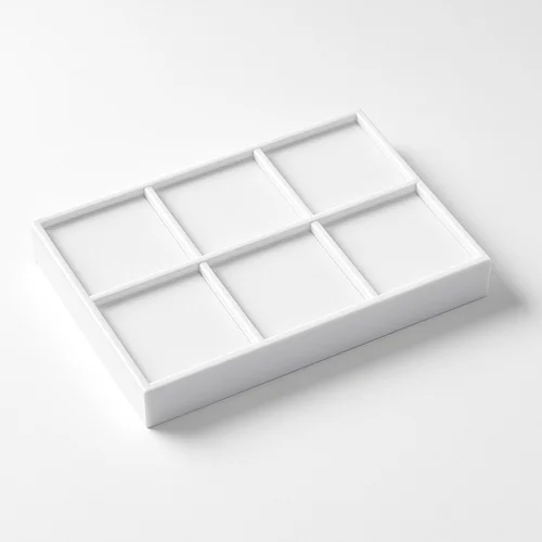 Rectangular white plastic box designed for gemstone and jewelry storage. Dimensions are 12x18 inches, offering ample space.