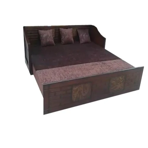 Convertible sofa bed made from 18mm ply board. Features a coffee color finish. Bed dimensions: 6x6.5x1.5ft. Sofa dimensions: 6x2.5x2.5ft, sitting height 1.5ft.