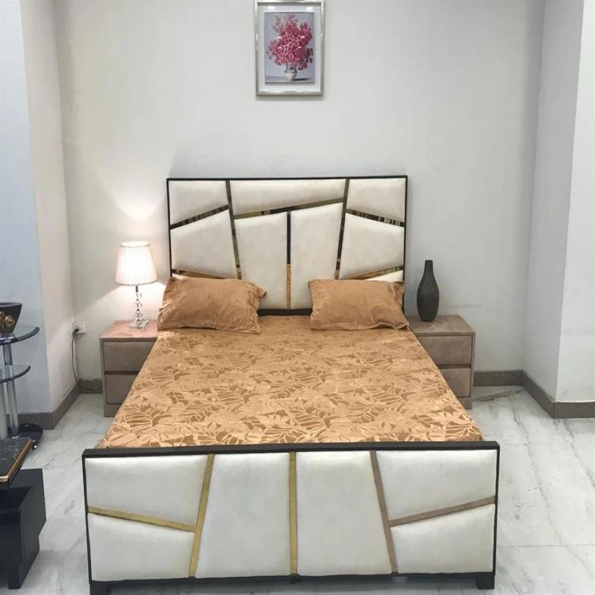 King size plywood double bed with box storage. Features 19mm board thickness and available in stock for prompt delivery. Suitable for any place.