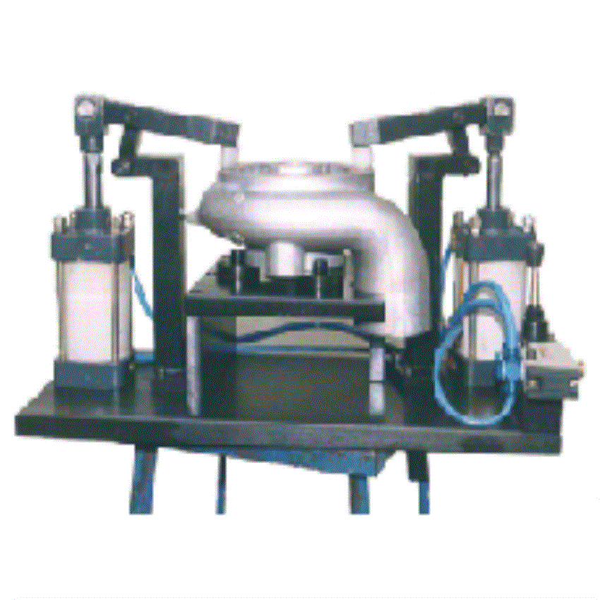 Automated pneumatic fixture for high-precision drilling. Provides rapid clamping and consistent workpiece securing, optimizing production speed and accuracy in industrial drilling tasks.