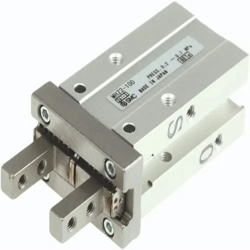 This parallel pneumatic gripper is designed for placement applications. It operates efficiently with 6 CFM air consumption and a maximum air pressure of 100 psi, ensuring reliable gripping.