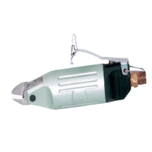 Pneumatic lead cutter with 4-5 Kg/sq cm air pressure. Features 116 cu cm stroke air consumption, cuts 0.8mm Cu wire diameter. Machine measures 36mm diameter and 143mm length, weighing 200gm.