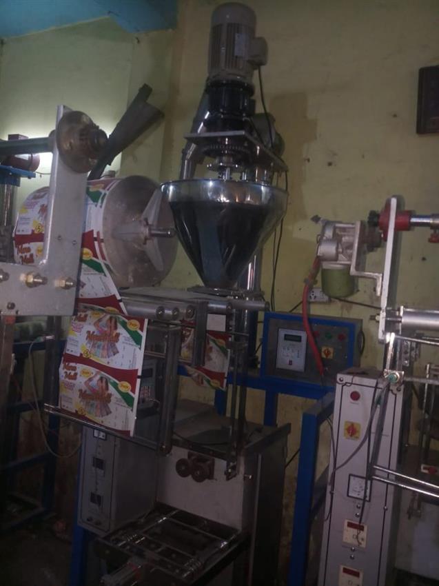 Automatic electric pneumatic augur filler machine for powder and spices. Handles 50g to 2kg, with center seal pouch type and laminate film guard.