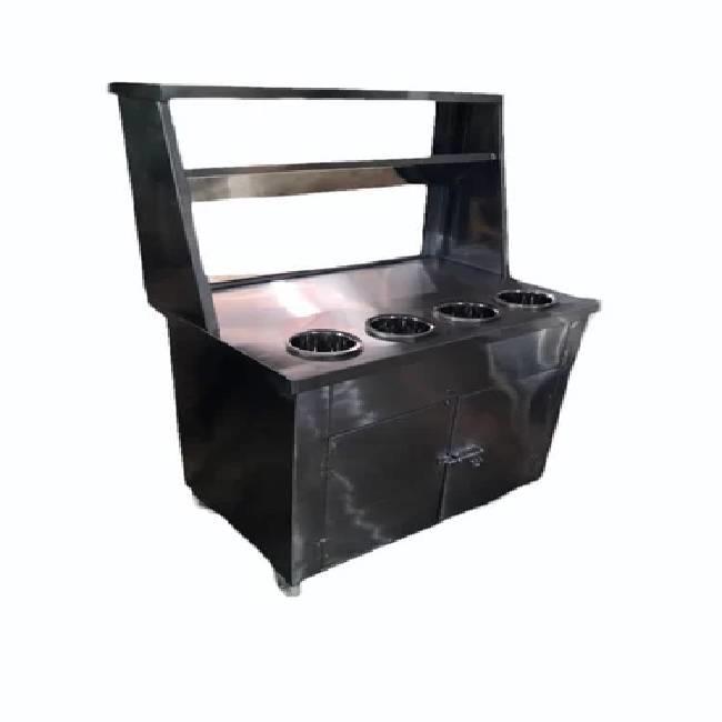 A 3.5-foot polished stainless steel golgappa counter with two shelves. Silver in color, this durable equipment is perfect for food preparation and serving.