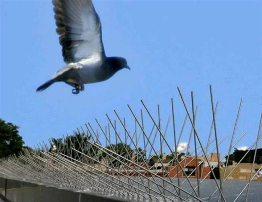 Polycarbonate bird spike designed for building protection. Offers effective bird control with a 3'4" cover width. Made in India.