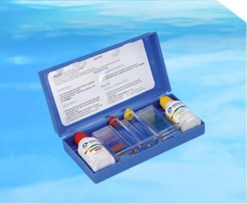 Blue plastic pool test kit for cleaning purposes. Accurately measures key water parameters to ensure pool hygiene and safety.