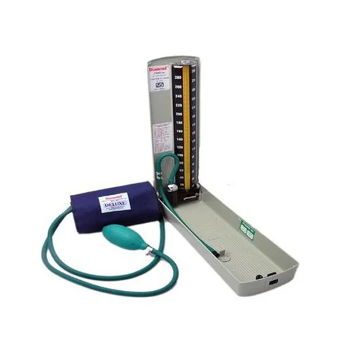 Portable blood pressure apparatus for hospital application. Features a 22-42 cm cuff circumference and an accuracy of +/- 0.01 mmHg. Weighs 400 grams.