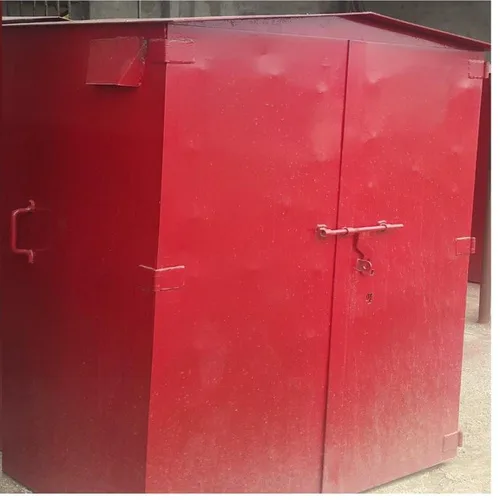 Rectangular or square portable explosive magazine made of MS plate. Non-folded, designed for portable magazine use. Manufactured in India.