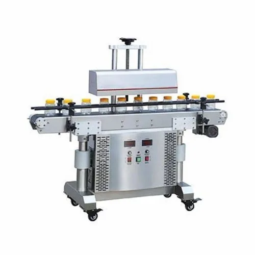 Automatic, portable induction sealing machine made of mild steel. Offers 500 pouch/hour capacity. Made in India with a 1-year warranty.
