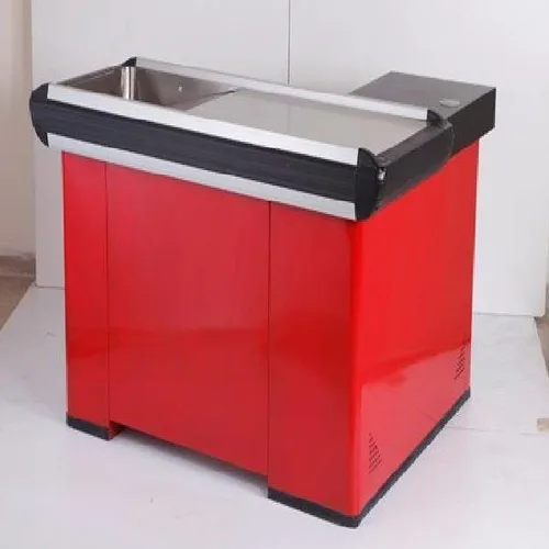 Rectangular POS counter, constructed from durable metal sheet. Designed for supermarket use. Dimensions: 60" x 42" x 30". Standard type, ready in 2 days.