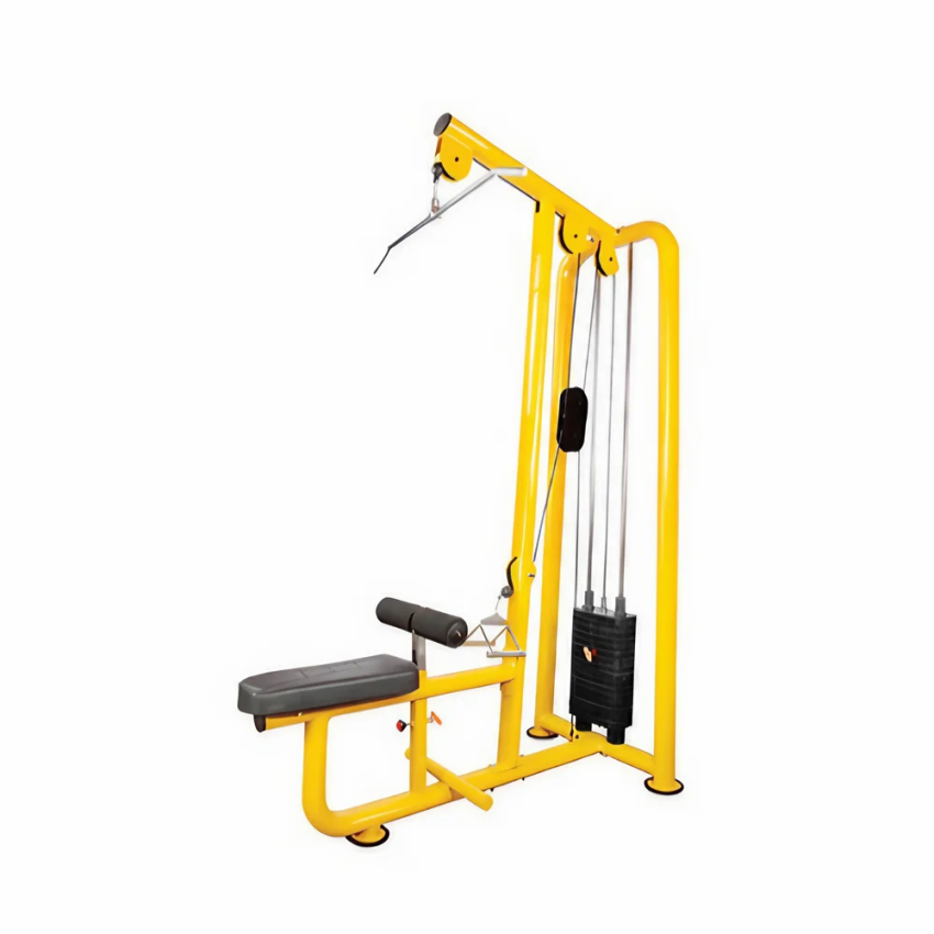 Standard weight stack lat and row machine with powder coat finish. Model HITECK-67, 80 KG stack weight. Made from mild steel for gym use.