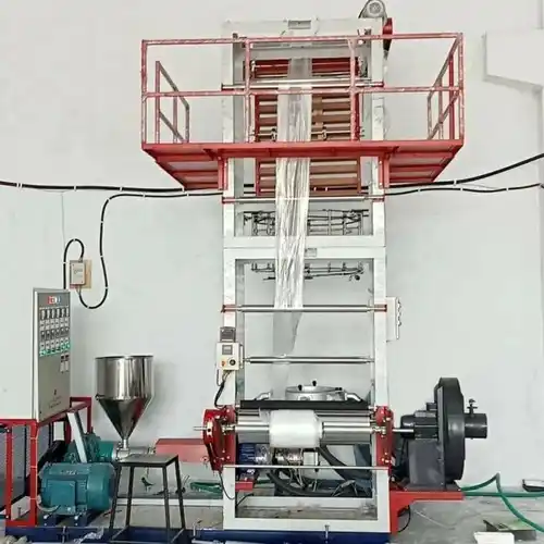 Semi-automatic extrusion machine for bio plastics film. Produces bioplastics film rolls up to 45 kg/hr. Features 45mm screw, 28:1 L/D ratio. Manufactures 15-60 CM width films.