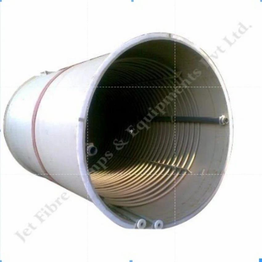 PP vessel featuring a cooling coil, available in various capacities and pressures. Constructed from FRP, Stainless Steel, or Galvanized Iron. Insulated with indicators.