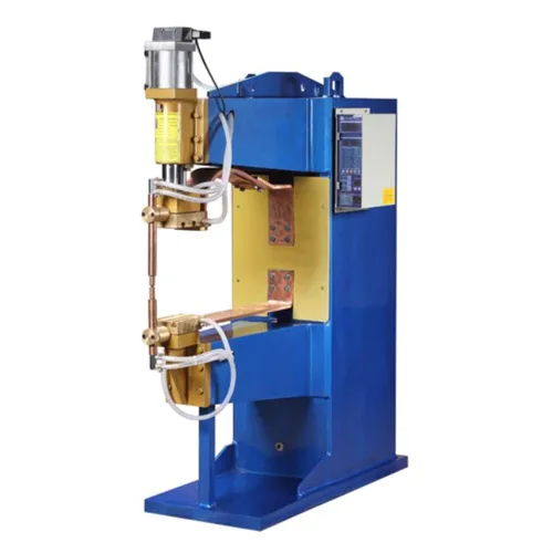 3-phase projection spot welding equipment with 60% duty cycle and Class F insulation. Max short circuit is 12000 Amps. 440V voltage with 30 cm throat depth.