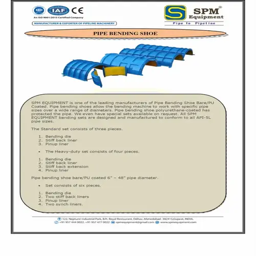 PU, Iron, and Steel pipe bending shoe for pipe bending machines. Manual automation, corrosion resistant. Length and dimensions custom to size. Wood or loose packaging.