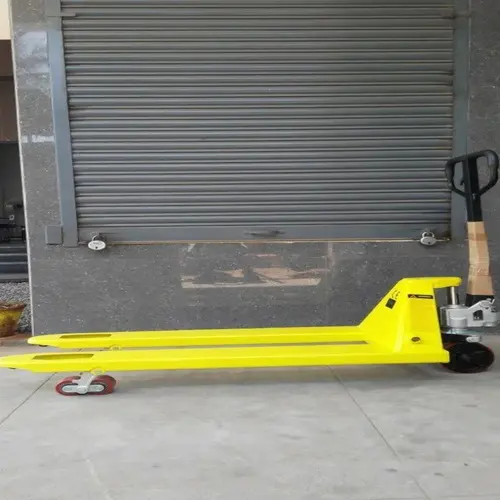 Manual pallet truck with 1150mm fork length, 200mm max lifting height, and PU wheels. Features 1-3 ton load capacity for efficient material handling.