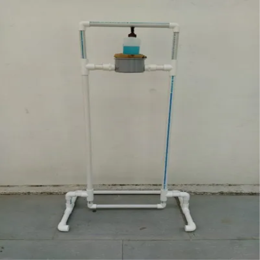 PVC foot press sanitizer dispenser for clinical applications. Manual operation mode ensures hygienic dispensing. Minimum order quantity of 5 pieces.