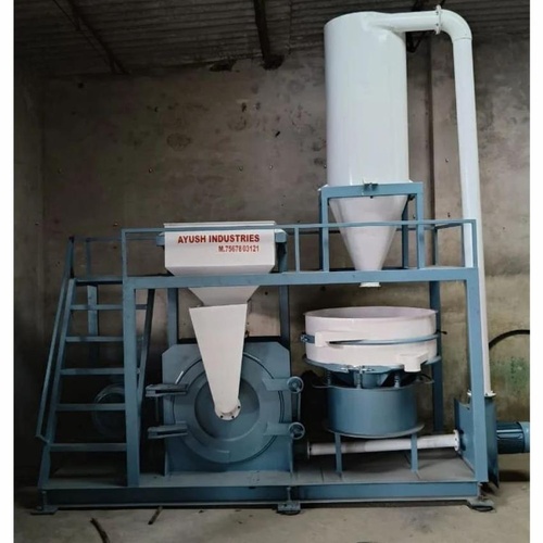 Semi-automatic Pvc pulverizer, mild steel construction, 100 kg/hr machine capacity. Operates on single-phase 240V. Ideal for grinding dry spices like chili and turmeric.