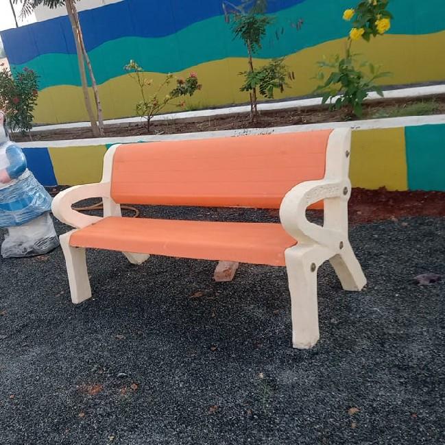 A 5-foot RCC garden bench with seating for three. Features both armrests and a backrest for enhanced comfort and support. Designed for durable outdoor use.