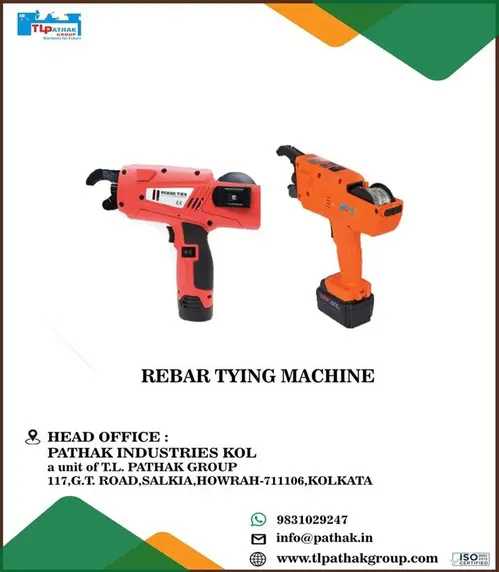 Combo binding rebar machine, model kcp34. Binds up to 34mm, with a max thickness of 30-40mm. Single-phase power supply, red color. Made in India.