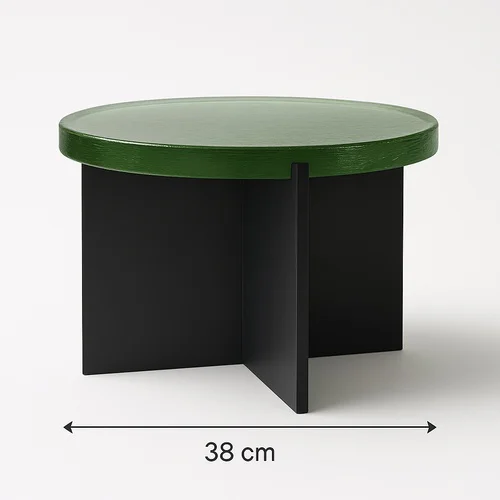 Rectangular cast glass center table with a crystal glass top. Stands 38cm tall with 4 legs. Features a light green hue and weighs 14kg.