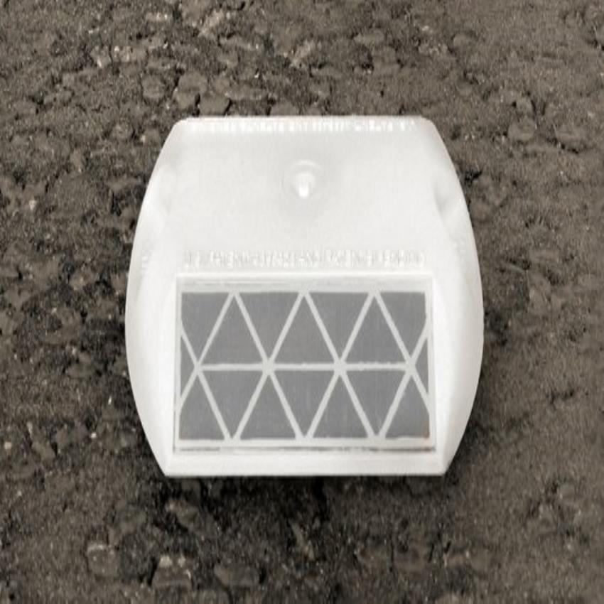 ABS body rectangular road stud, white color. Fixed on road for road safety applications. Minimum order quantity of 10 pieces.