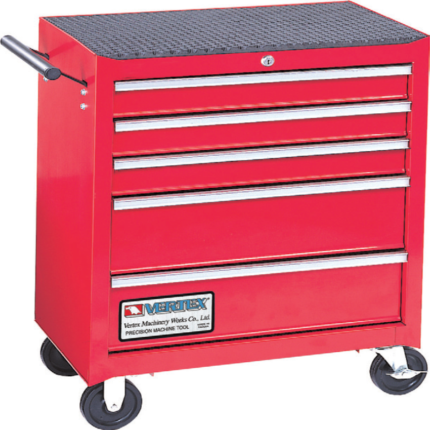 Red VERTEX VTC-23 tool cabinet with 1-year warranty. Features drawers with dimensions 480/292/75mm and 480/292/154mm. Designed for efficient tool organization.
