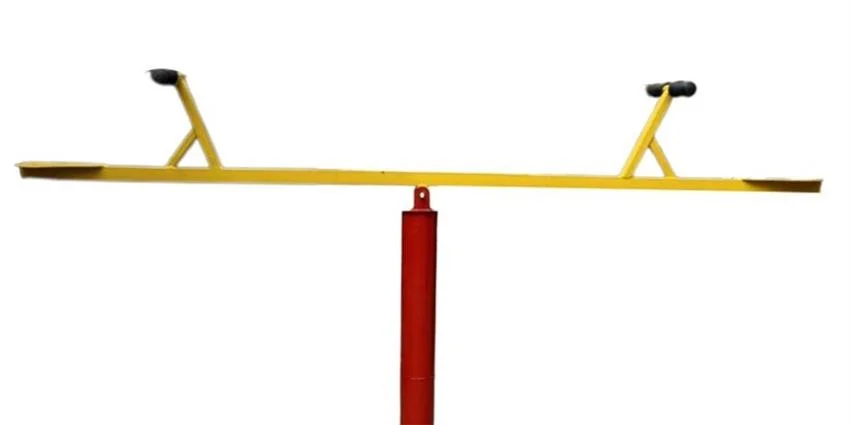 New 2-seater outdoor seesaw machine in red and yellow. Constructed from Fe 500 grade Mild Steel with a size of 6 x 2 ft.