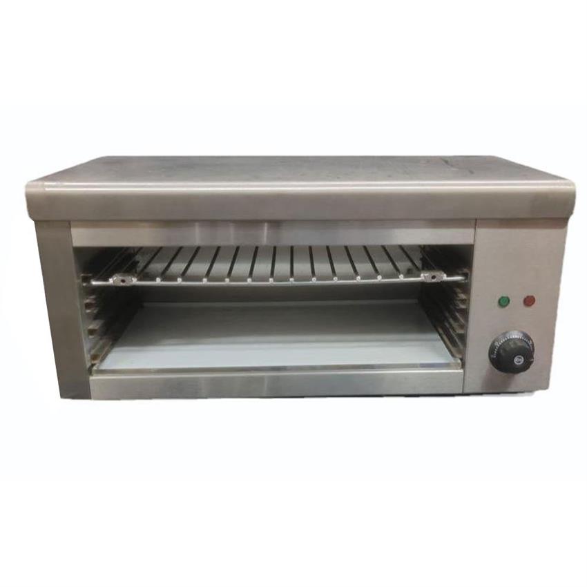 Silver stainless steel electric salamander grill measuring 600x520x530mm. Features single-phase power at 50Hz, ideal for restaurant applications.