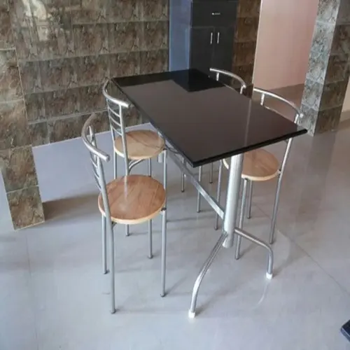 Durable stainless steel folding table, customized design for restaurant use. Features adjustable height and accommodates 4 seats. Made in India, currently in stock for your establishment.