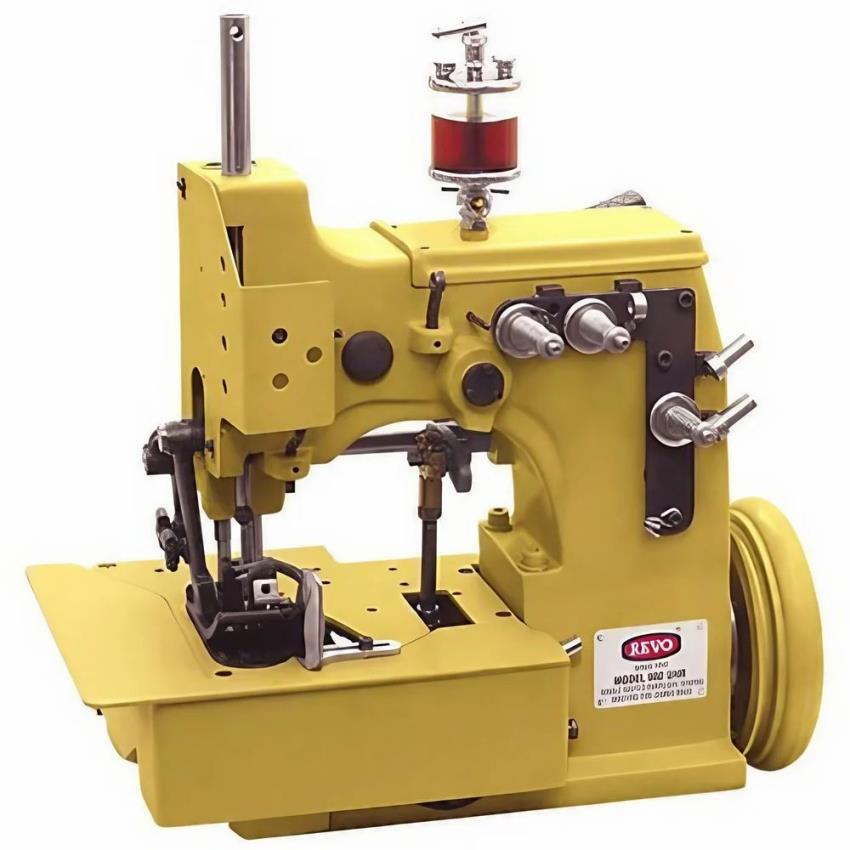 Revo 602UHR semi-automatic single needle sewing machine for industrial use. Features 1 HP motor, 2000-3000 stitches/min, and up to 18mm overseam width for HDPE bags.