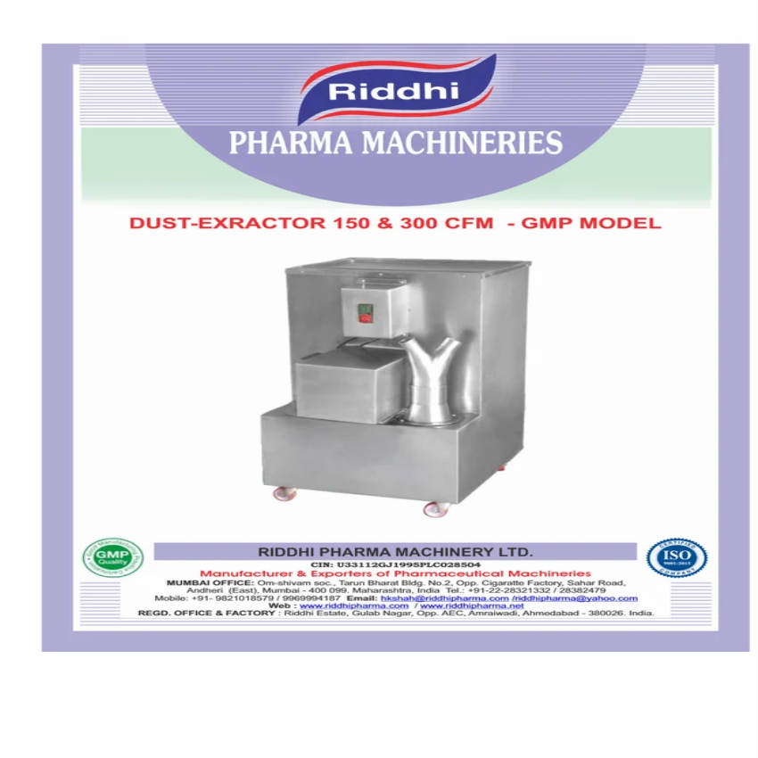 Automatic 300 CFM dust extractor machine, constructed from SS. Ideal for tablet press and capsule filling machines, ensuring a clean production environment.