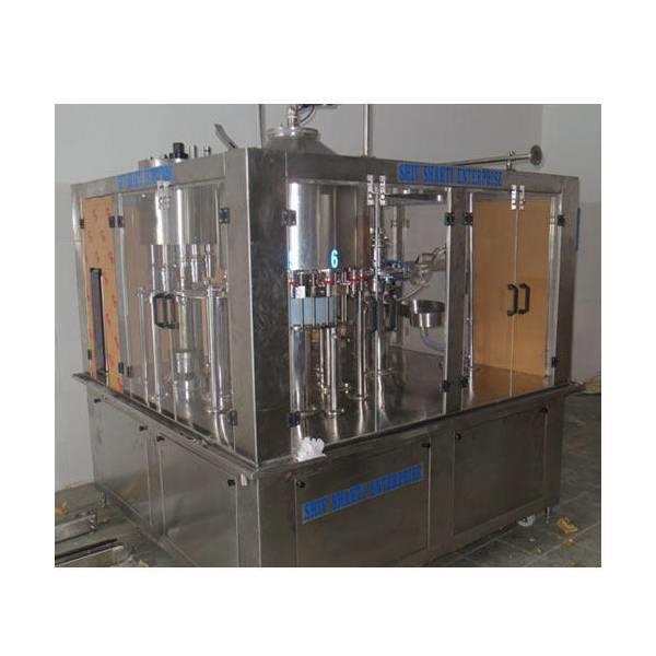 Automatic rinsing, filling, and capping machine for beverages. Features 16 rinsing heads, 3 kW electric power, and requires 0.4m3/min sterile air. Conveyor height minimum 60 feet.