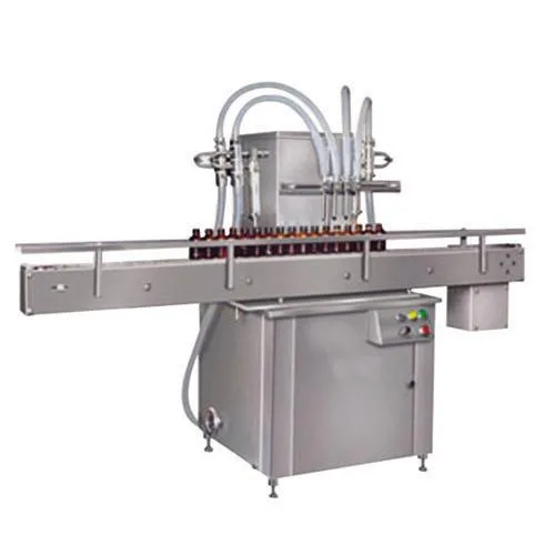 Fully Automatic Liquid Filling Machine (Model RLF200). 1.5 H.P, 400x800x1700mm dimensions. Fills 20-30 jars/min with volumes from 50ml to 5ltr. Net weight 480 kg.