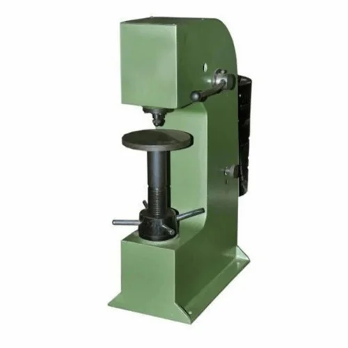 Manual HRC hardness testing machine made of MS with powder-coated green finish. Weighs approximately 30 kg. Designed for accurate HRC parameter measurement.